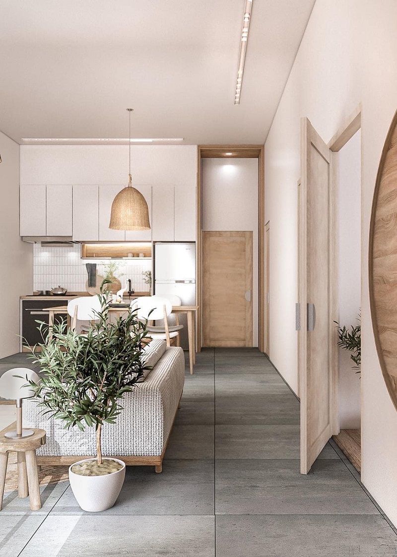 Thiết kế nội thất nhà cấp 4 hiện đại 2 phòng ngủ