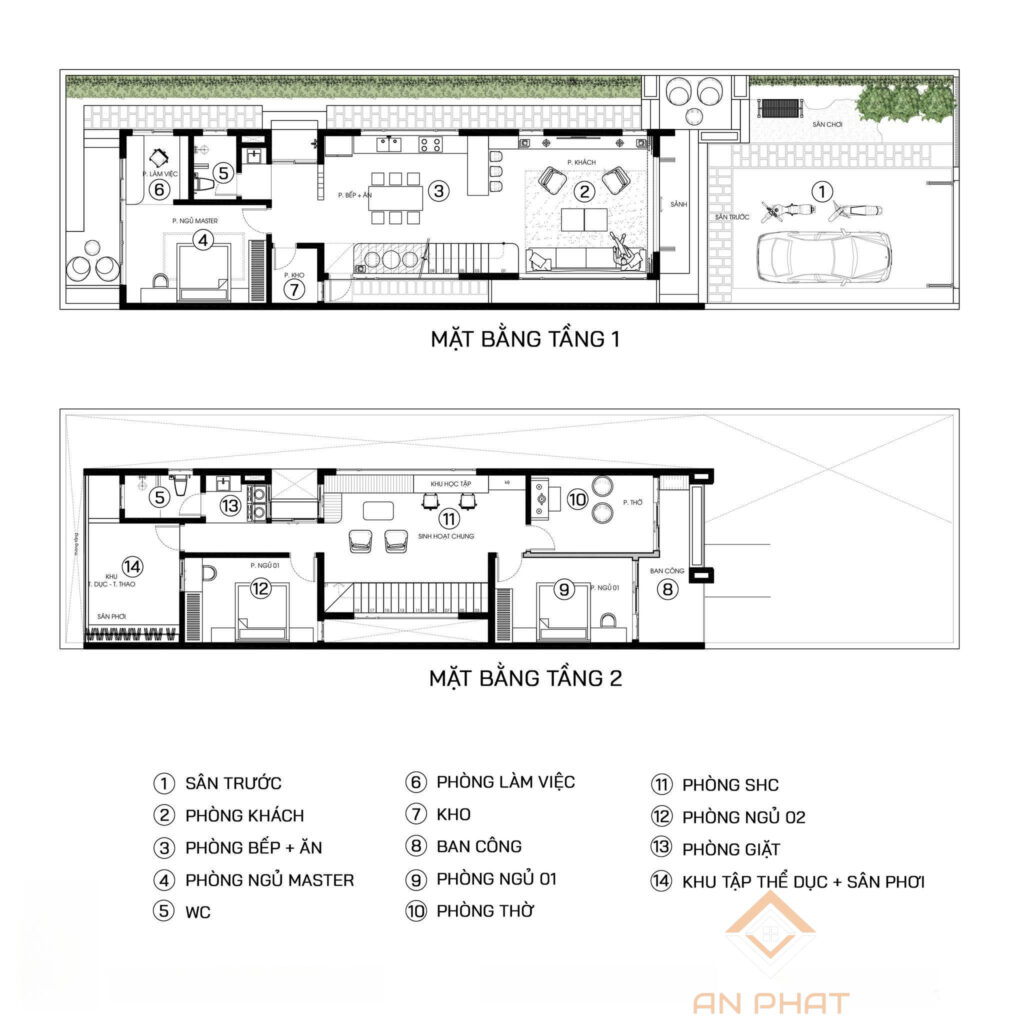 Mặt bằng công năng mẫu nhà phố 2 tầng hiện đại 8x30m -NP14