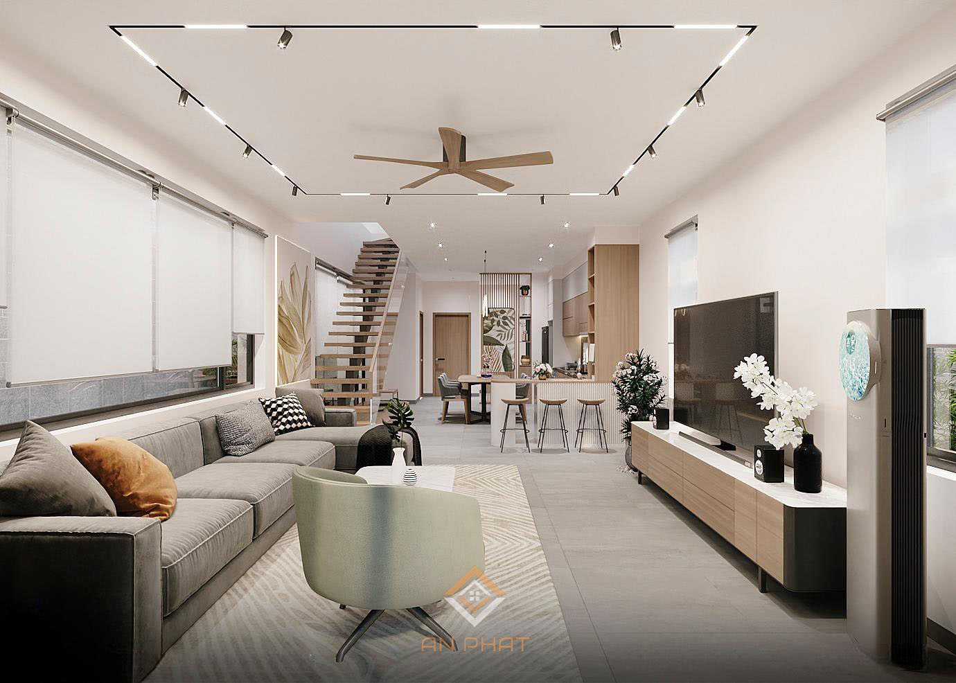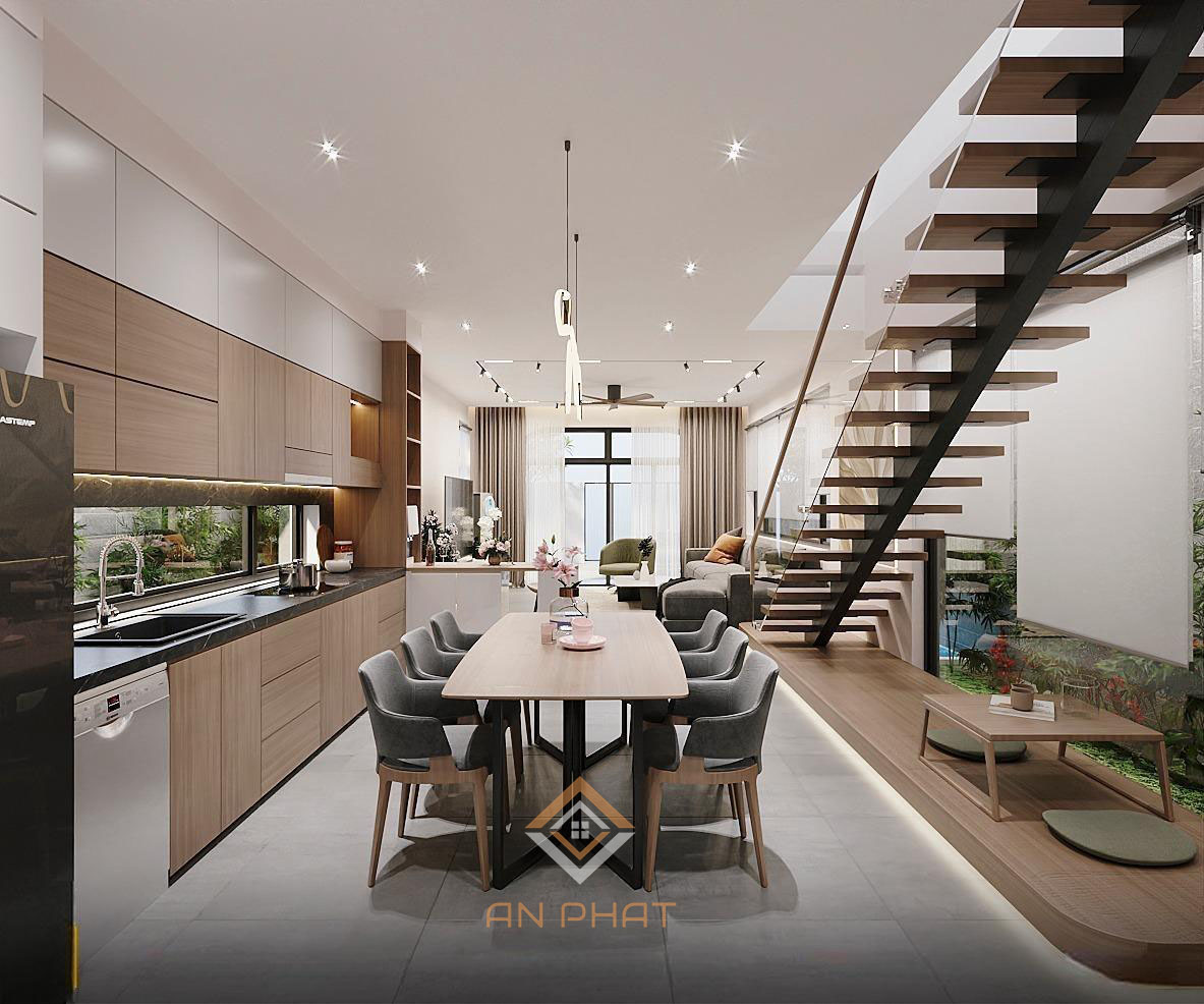 Phối cảnh nội thất mẫu nhà phố 2 tầng hiện đại 8x30m – NP14