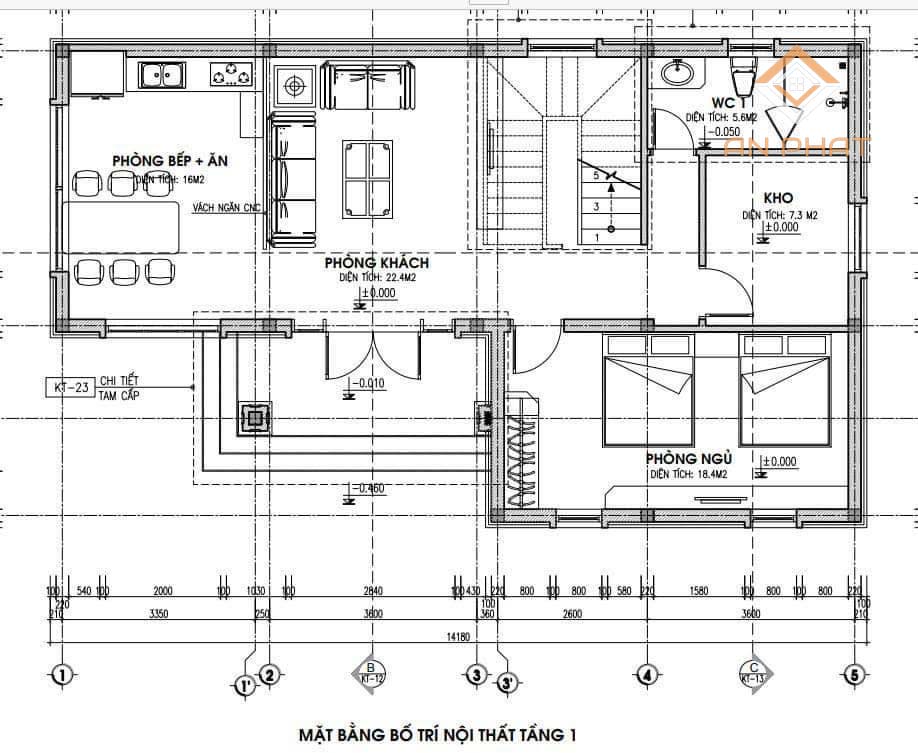 • Kế bên Phòng khách là Phòng bếp + ăn