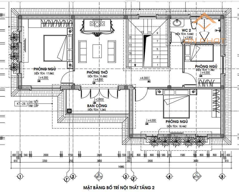 • Phòng thờ được bố trí vị trí trung tâm cảu tầng hai