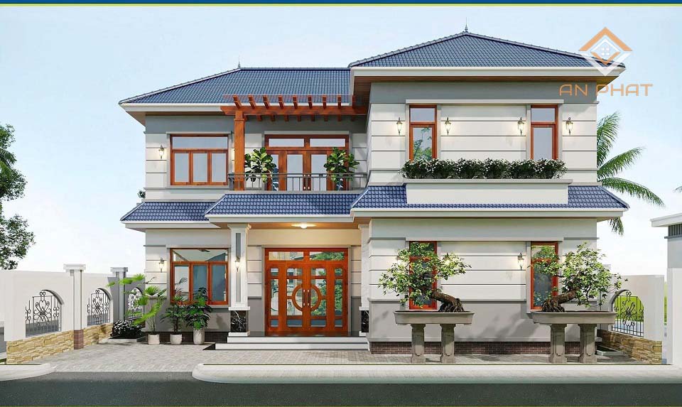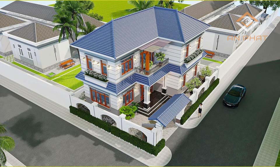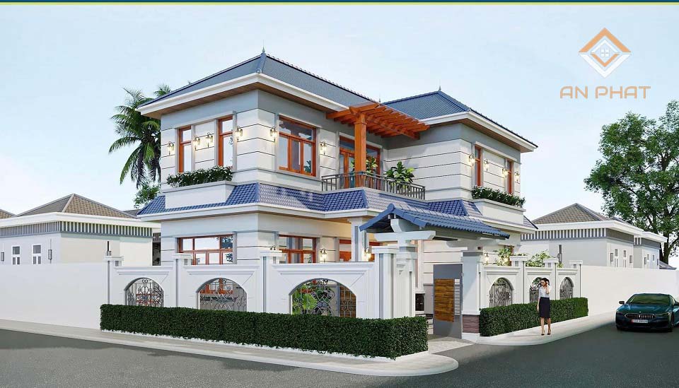 Phối cảnh ngoại thất nhà 2 tầng mái nhật anh Tâm