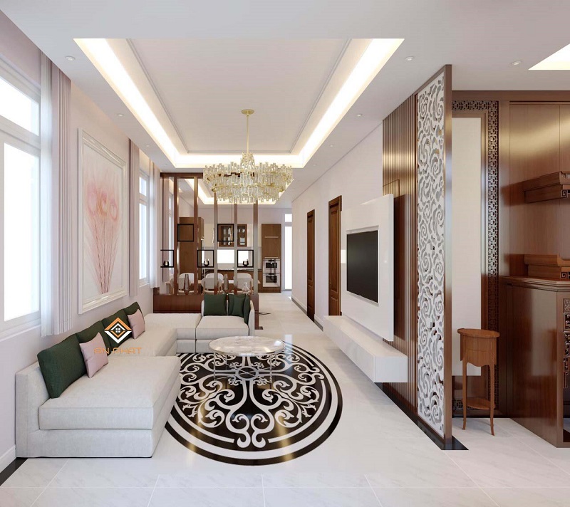 Nội thất công trình được thiết kế với màu tường trần được sơn màu trắng kết hợp với nội thất màu gỗ tạo cho không gian thêm sang trọng và tạo được sự ấn tượng ngay lần đầu thấy.