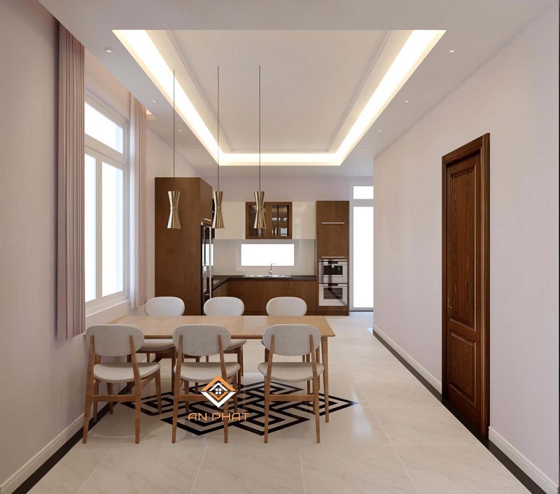 Sở hữu diện tích đất rộng nên các kiến trúc sư có thể thoải mái sáng tạo và bố trí các không gian sao cho tiện nghi và sang trọng nhất. Với thiết kế khách – bếp và 3 phòng ngủ đầy đủ công năng mang đến sự thoải mái nhất cho gia chủ. Từ sảnh chính vào là phòng khách lớn, nới để tiếp đón những vị khách quý. Liền tiếp là phòng bếp ăn thiết kế có cửa sổ để giúp cho không gian này trở nên thoáng đãng, tránh bị bám mùi thức ăn.