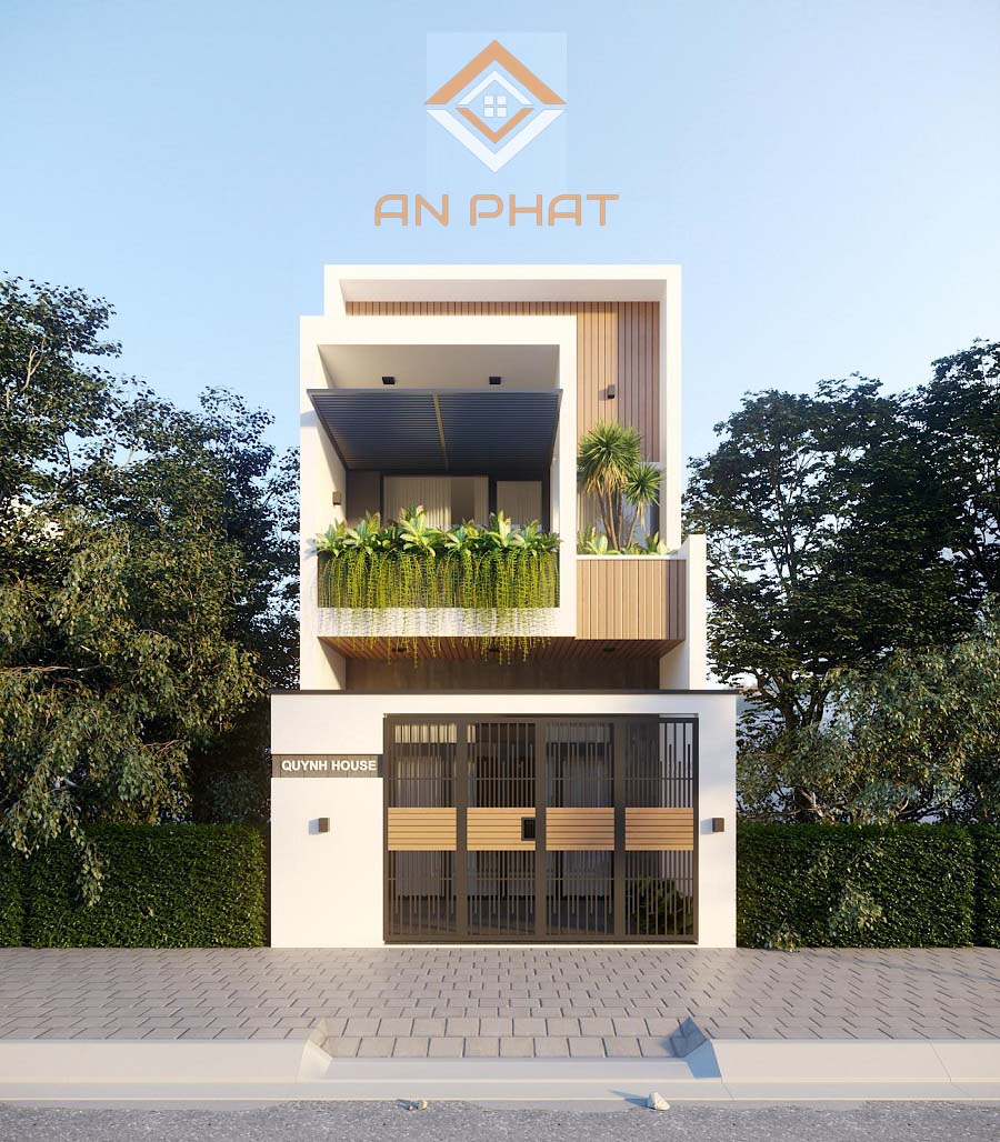 Phối cảnh mặt tiền nhà phố 2 tầng.