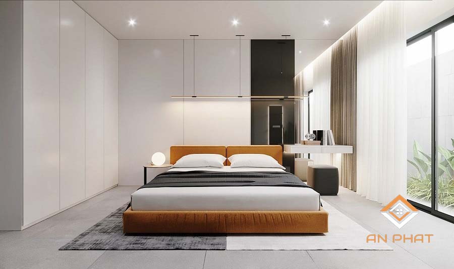 Với thiết kế đơn giản mọi chi tiết nội thất được làm phẳng phie được trưng của phong cách hiện đại.