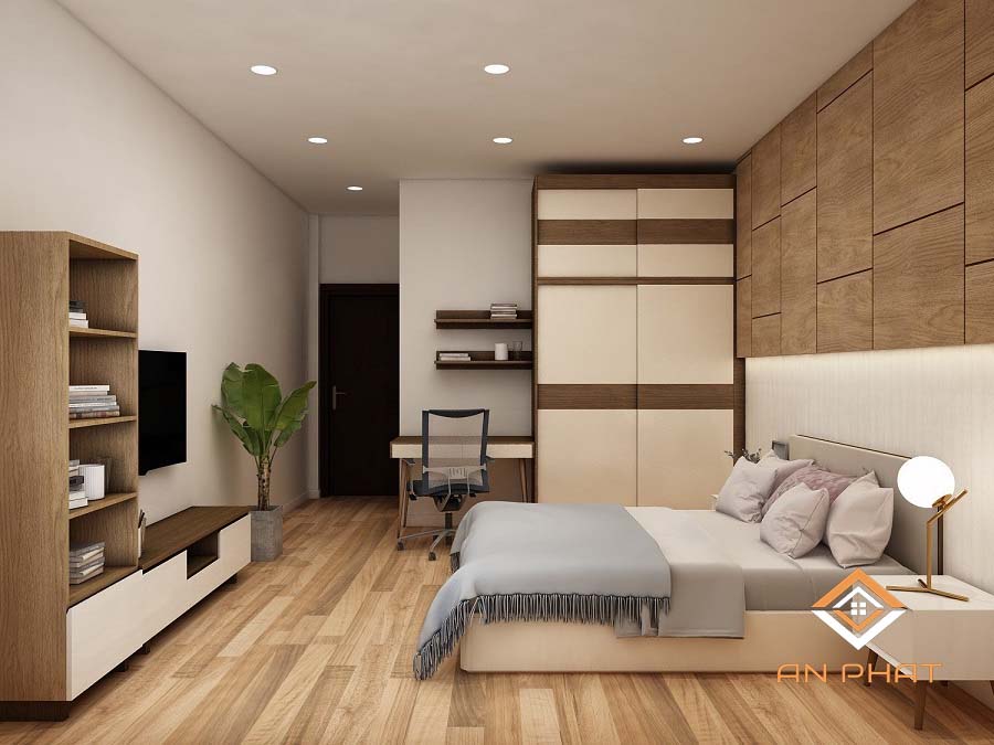 Thiết kế nội thất phòng ngủ cho nhà phố 2 tầng nhằm tạo cho mọi người một không gian thư giãn lý tưởng và thoải mái sau một này làm việc căn thẳng. Sau một ngày dài làm việc mệt mỏi bất cứ ai cũng mong muốn được trở về nhà và nghĩ ngơi trong một căn phòng đầy đủ tiện nghi.