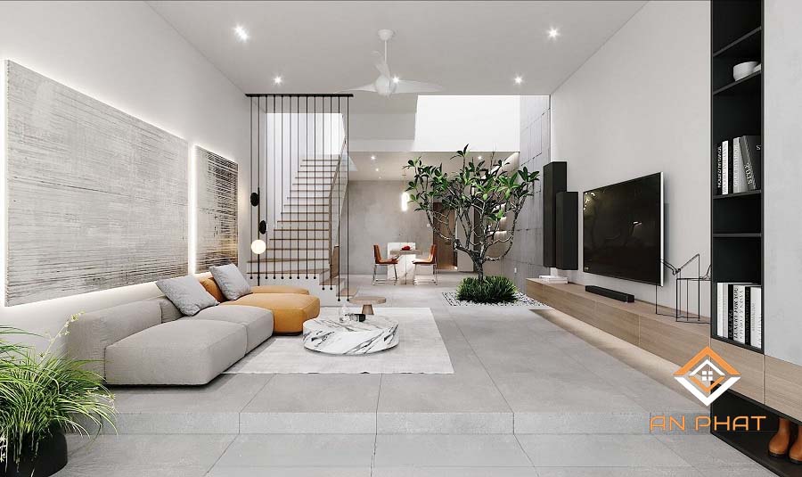Phối cảnh nội thất nhà phố 2 tầng đẹp