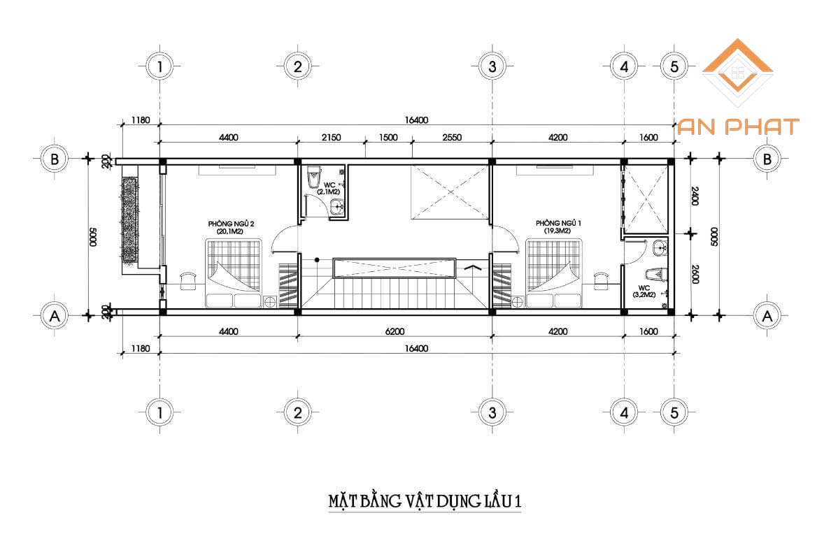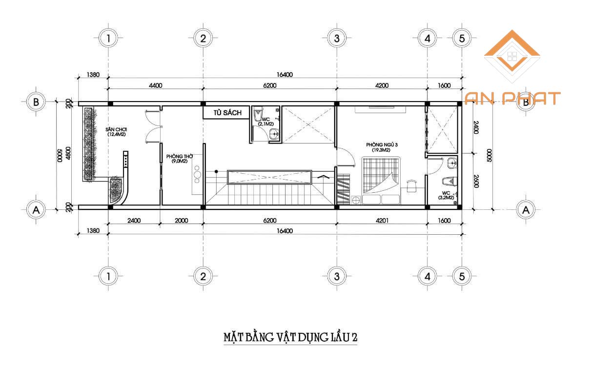Lầu 2 được bố trí bao gồm: