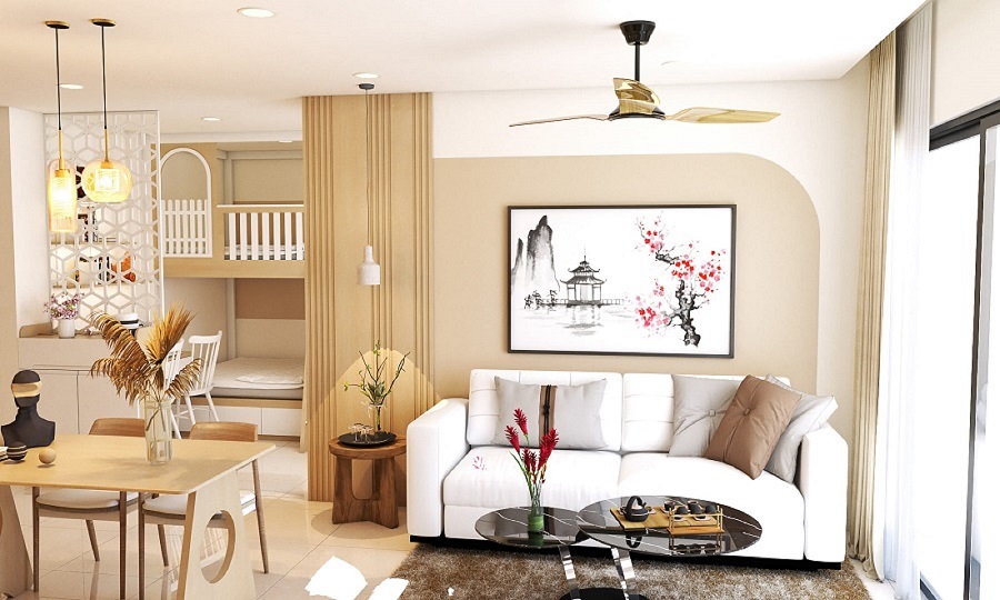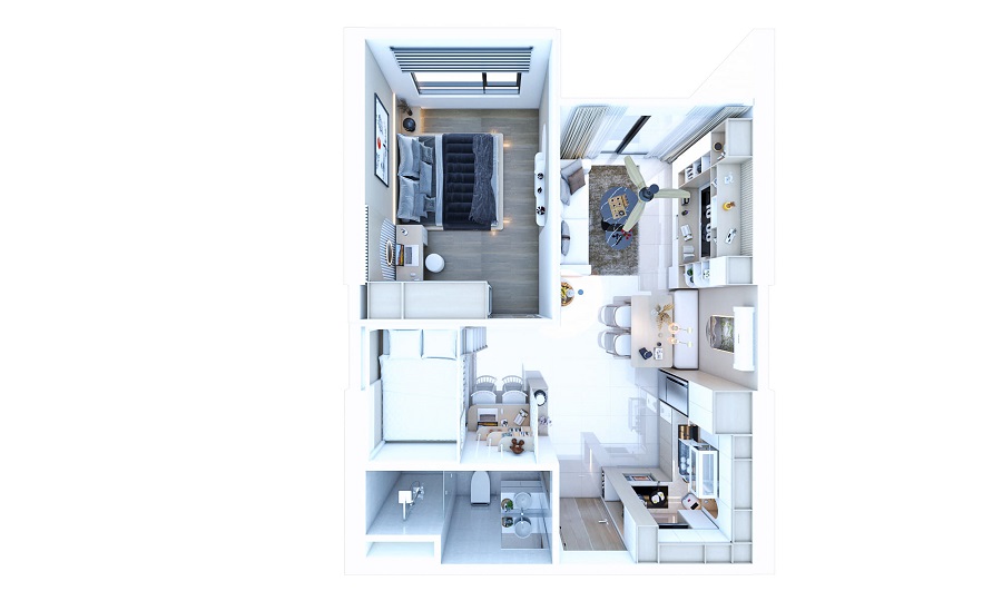 Phối cảnh nội thất căn hộ 1 phòng ngủ.